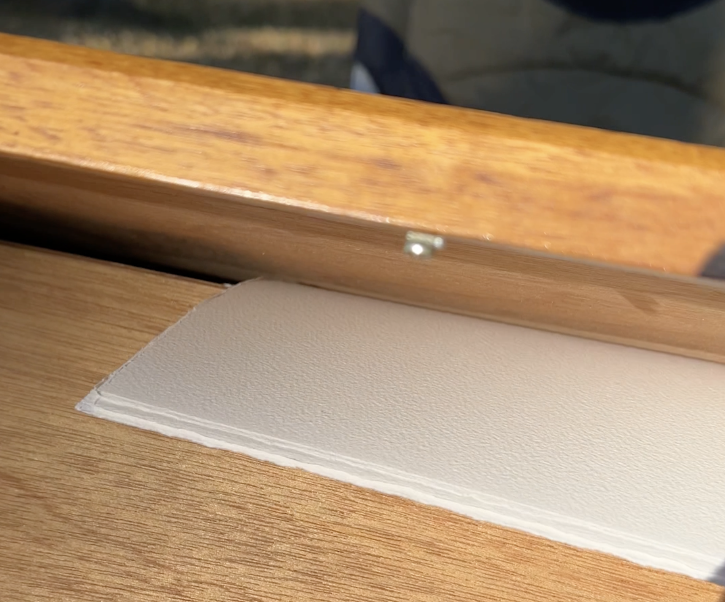 There are times when my painting benefits from being able to keep my hand low and parallel to the painting surface, and this causes the problem depicted in the illustration above. Having the tray at the front also leads to constant wondering if I am getting paint on my sleeves.